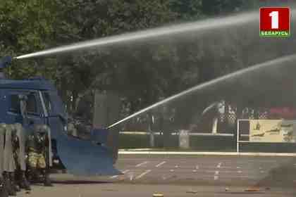 В Белоруссии внутренние войска МВД устроили для президента Александра Лукашенко показательный разгон протестующих с помощью водометов. Об этом во вторник, 28 июля, сообщает «Наша Нiва».