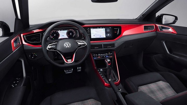 В интерьере появилось больше красного декора и спортивный руль, но в целом он идентичен салону обычного Polo. Здесь есть цифровая панель приборов с диагональю экрана 10,25 дюйма, новая мультимедийная система с 8-дюймовым экраном, который можно заменить 9,2-дюймовым. В списке опций значится акустическая система Beats с шестью динамиками.
