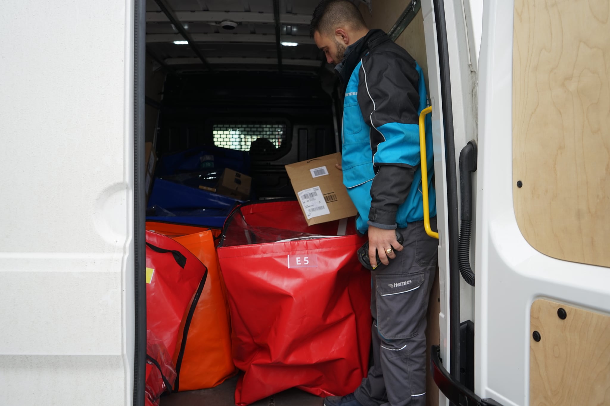 Было применено программное решение, которое предварительно изучает маршрут доставки и помогает загрузить фургон в логическом порядке. Так, например, 18 квадратных метров полезной площади грузового отсека Сrafter разделили на зоны, в которые загрузили специальные клеенчатые сумки с посылками.