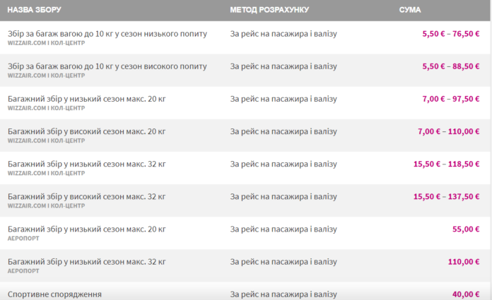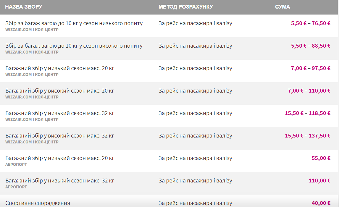 Wizz Air изменил цены на перевозку багажа и размеры других сборов (инфографика) / Новости / Finance.ua