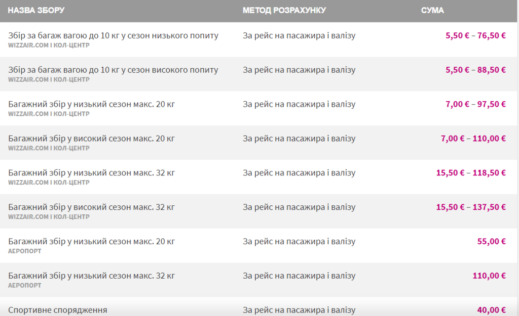 Wizz Air изменил цены на перевозку багажа и размеры других сборов (инфографика) / Новости / Finance.ua