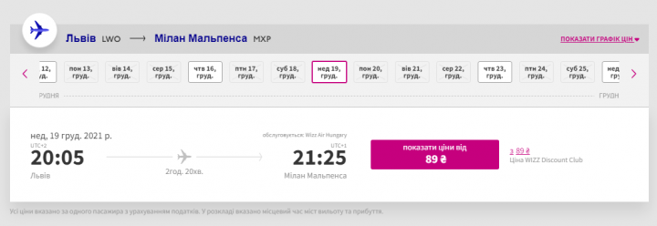 «Указанная количество билетов (10 000) по цене 1,99 евро применяется 10 декабря 2021 года для выбранных рейсов в и из Италии. Цена действительна только для бронирования билетов на сайте wizzair.com и через мобильное приложение WIZZ», — сказано в сообщении.