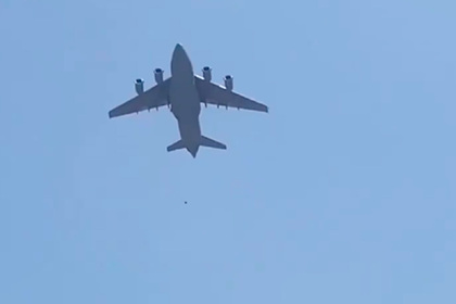 Видео, на которое попал момент падения двух местных жителей из самолета, опубликовало Aśvaka News Agency. По предварительным данным, афганцы сотрудничали с силами США и пытались спастись на самолете, чтобы избежать расправы боевиками движения «Талибан» (запрещено в России). Однако на борту места для них не нашлось. Двое беженцев зацепились за шасси, но не смогли удержаться, когда самолет набирал высоту.