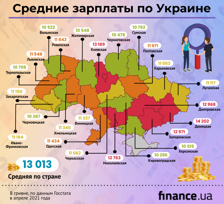 Зарплата в Украине по регионам и городам (инфографика) / Новости / Finance.ua