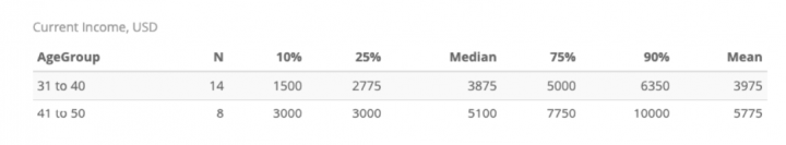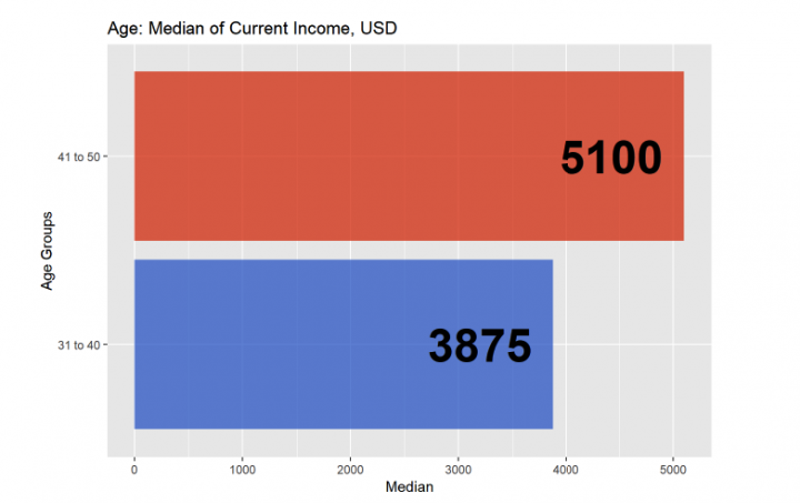 Большинство респондентов — в возрасте от 31 до 40 лет, но заработок выше у тех, кто старше 41 года — $5100 на медиане против $3875. Также и верх вилки у них $10000, а не $6350, как у более молодых финансовых директоров.