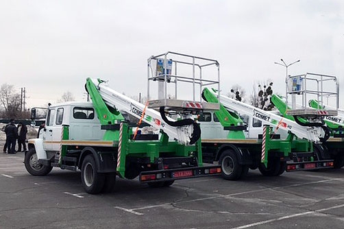 Если говорить о конкретных поставках, то в первую очередь отметим КП «Киевгорсвет», которое закупило девять единиц автогидроподъемников итальянской марки Comet. Среди них восемь 18-метровых и одна с высотой подъема 14 м. Все автовышки оснащены корзинами грузоподъемностью 250 кг. В качестве шасси использованы автомобили IVECO Daily 60C15D с двухрядными кабинами, которые поставлены компанией АМАКО.