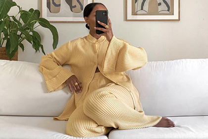 По мнению Эггенбергер, подобные наряды смотрятся уместно как во время публичных выходов, так и в качестве домашней одежды. Она составила подборку вязаных костюмов разной ценовой категории, кроя, цветов и опубликовали ее на сайте платформы.